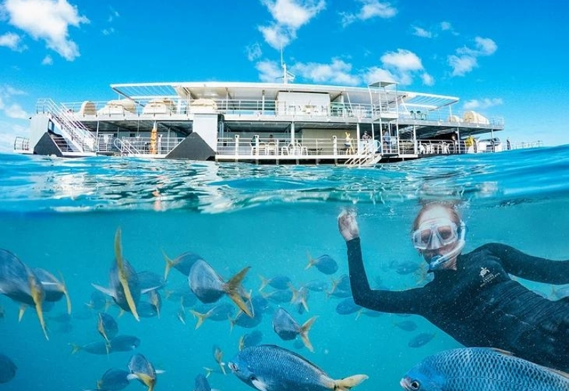Dünyanın en büyük mercan resif sistemi Avustralya’nın Queensland kıyılarında bulunmaktadır. Büyük Set Resifi 2900 resif ve 900 adadan oluşuyor ve dünyanın en büyük doğal manzaralarından biri. Büyük Set Resifi’nin ortasında yer aldığı için Avustralya’nın en popüler destinasyonlarından biridir. Hızlı bir tekne sizi kıyıdan 40 deniz mili (64 kilometre) uzaktaki Hardy Reef’e götürmek için Airlie Beach Marina iskelesinden kalkıyor. Bu otel iki tip konaklama imkanı sunuyor; glamping ve su altı. Yüzen otel, burada bulunan muhteşem deniz yaşamına herhangi bir zarar vermeden mercan resiflerine güvenli bir şekilde yanaşmıştır.