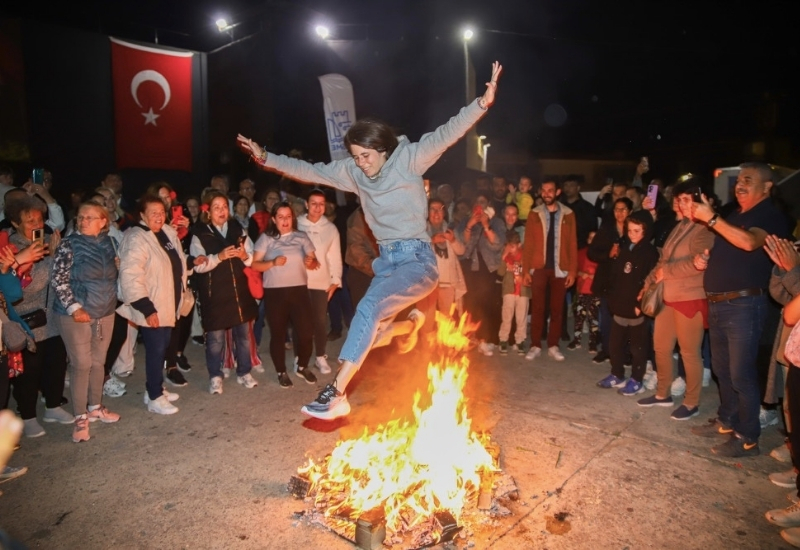 Renkli görüntülere sahne olan kutlamaların coşkusuna, zaman zaman etkisini artıran rüzgâr da engel olamadı. Çeşme Belediyesi ekipleri, sabah saatlerinden itibaren kutlamalar için hazırlıklara başlarken, etkinlik alanında ateşler yakıldı. Yoğun rüzgâra rağmen yüzlerce vatandaşın katıldığı kutlamalarda Çeşme Belediye Başkanı Lal Denizli ile birlikte vatandaşlar da şenlik alanında yanan ateşin üstünden atlayarak baharın gelişini kutladı.