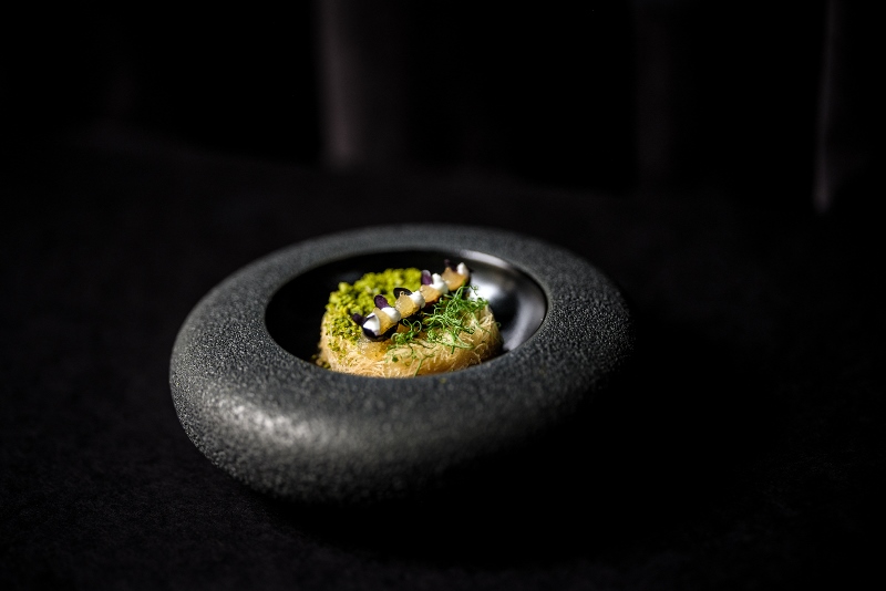 Menüsünde aperatiflerin yanı sıra karides, rondo baharatlar eşliğinde ve balkabağı kreması, safrandan oluşan tartelette gibi eksantrik tadımlarda risottolu patlıcan kompostosu, kaplan karidesi ve çiçek yapraklarıyla süslenmiş melek saçı (kadayıf) lezzet özgünlüğü açısından en çok öne çıkan lezzetler arasında bulunuyor.