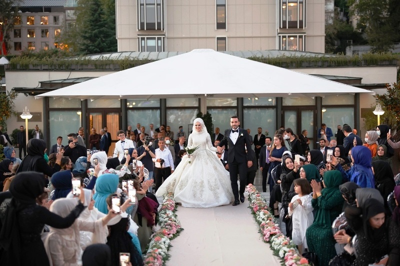 Four Seasons Otel’de boğaza nazır gerçekleşen muhteşem gecenin ilk bölümünde, çiftin nikah şahitliklerini; Opet Genel Müdürü İrfan Özdemir, Mustafa Kemal Sinanlı, Yılmaz Çakır, Murat Cengiz, Mehmet Daniş, 23. Dönem Batman Milletvekili Mehmet Emin Ekmen, 20 ve 21. Dönem ANAP ve 26. Dönem Ak Parti Milletvekili Ataullah Hamidi, Adalet ve Kalkınma Partisi Kurucular Kurulu Üyesi Belma Satır yaptı. Evlilik cüzdanlarının yanı sıra bir ömür boyu mutluluğa imza attıkları kelemide en özel günlerinin hatırası olarak Belma Satır’ın elinden alan çift, ilk dansları için ise Eylem Aktaş’ın ”Yüreğimden Tut” şarkısını tercih etti.