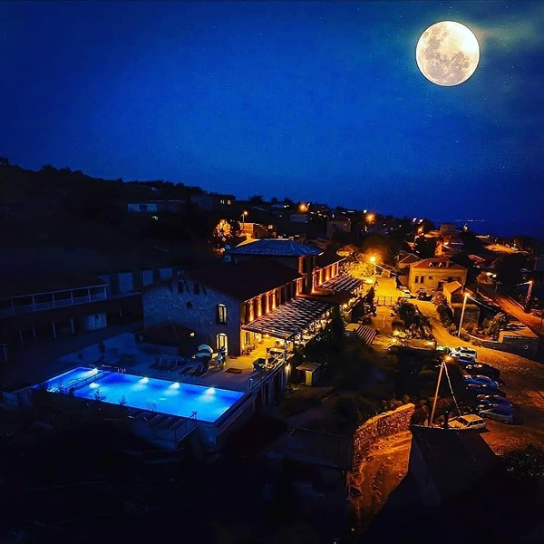 Assos’un en huzurlu bölgelerinden Ayvacık Büyükhusun Köyü’ndeki Sunaba Kasrı Otel, eşsiz konumu ve doyumsuz Ege Denizi ve Midilli manzarası ile sizi daha önce yaşamadığınız bir deneyime, büyülü gün batımı anlarını yakalamaya, dolunayın güzelliğini izleyip manzaranın tadını çıkarmaya davet ediyor.