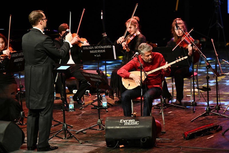 “İpek Yolu Senfonisi”ni seslendiren orkestraya, ünlü sanatçı Erdal Akkaya ve konuk solist Canan Başkaya da türküleriyle eşlik etti.