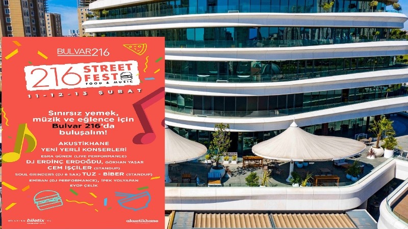 Ataşehir’deki Bulvar 216’da 11-12-13 Şubat’ta gerçekleştirilecek festivalde; İstanbul’un sevilen restoranları ve şeflerinin hazırladığı tadımlık lezzetler, özel kokteyller ve workshop’lar ziyaretçilere keyif ve lezzet dolu 3 gün yaşatacak. 11 Şubat Cuma günü 16.00’da kapılarını açacak olan 216 Street Fest, 12 Şubat Cumartesi ve 13 Şubat Pazar günü ise 13.00 – 20.00 arasında ziyaretçilerini bekliyor.