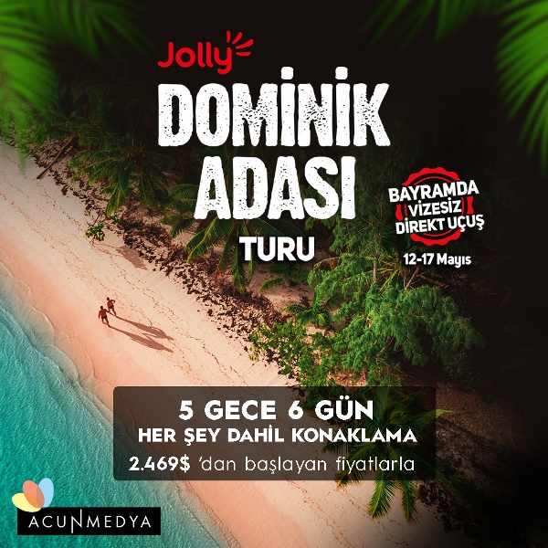Ramazan Bayramı için Jolly ile Dominik Cumhuriyeti’ne ve Acun Medya Yarışma Parkuruna gitmeye hazır olun! 12-17 Mayıs 2021 tarihinde THY’nın direkt uçuşu ile 5 gece her şey dahil kişi başı 2.469$’dan başlayan fiyatlarla Vizesiz Dominik Cumhuriyeti sizleri bekliyor.