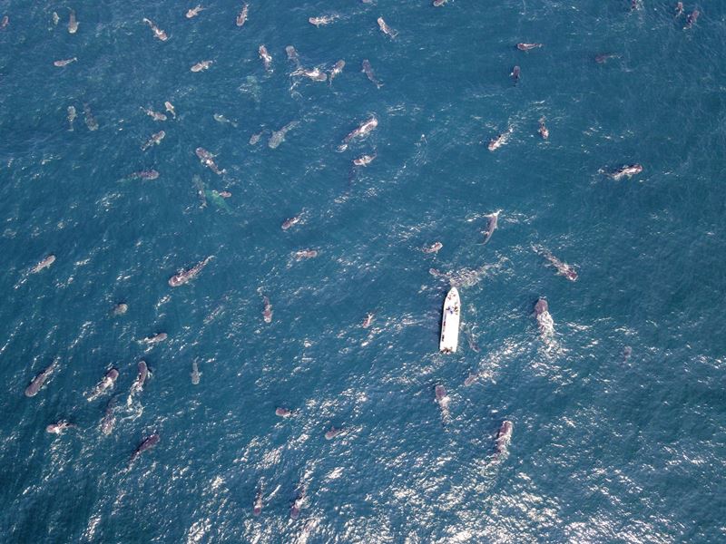 Katar Turizm, dünyada nesli tükenmekte olan balina köpekbalıklarının Katar’ın kuzeydoğu kıyılarındaki en büyük göçünü drone ile görüntüledi.