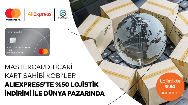 Türkiye’nin hedeflediği ihracat rakamlarına ulaşması için ticari işletmelere destek olan Mastercard, Mastercard Ticari Kart sahibi işletmeleri dünyaya açıyor. Mastercard Ticari Kart sahibi işletmelerin, AliExpress üzerinden ShipEntegra’nın eşsiz lojistik çözümlerinden faydalanacağı kampanya kapsamında; AliExpress’te mağazasını açan ve 11.11 Global Alışveriş Festivali’ne katılan satıcılar Mastercard, Aliexpress ve ShipEntegra iş birliği ile yurt dışı lojistik masraflarında yüzde 50 indirim ayrıcalığından yararlanıyor.