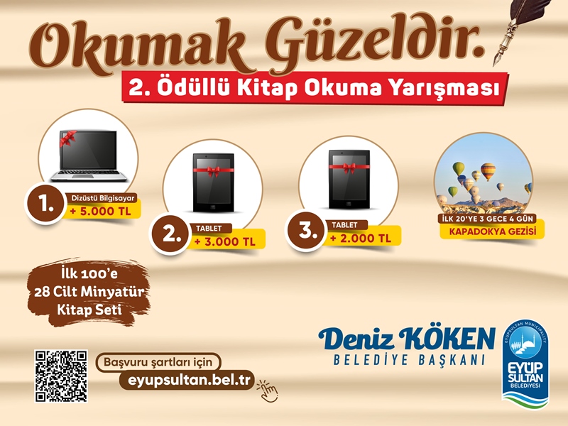 Eyüpsultan Belediyesi tarafından ilki geçen yıl düzenlenen ve 10 bini aşkın kitapseverin katıldığı Okumak Güzeldir yarışmamızın ikincisini yapılıyor.