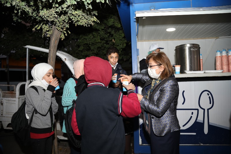 Gaziantep Büyükşehir Belediyesi çorba ikramlarını sürdürüyor. Büyükşehir Belediyesi Kadın Aile Eğitim ve Sosyal Hizmetler Daire Başkanlığı tarafından sürdürülen çorba ikramı hizmetine özellikle havaların soğumasıyla vatandaşların ilgisi artıyor. Bu kapsamda Başkan Fatma Şahin, dağıtımın yapıldığı yerlere ve çeşmelerin bulunduğu noktaları ziyaret ederek, öğrencilere, erken saatlerde işlerine gitmek için otobüs duraklarında bekleyen çalışanlara sıcak çorba ikramında bulundu. Vatandaşlarla bir süre sohbet eden Başkan Şahin, çeşmelerde bulunan sistem hakkında bilgi aldı.