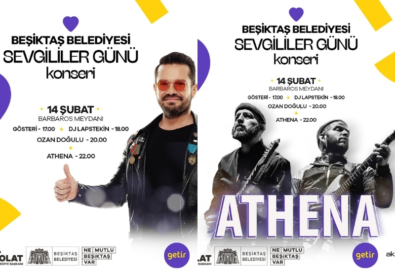 14 Şubat’ta Beşiktaş Barbaros Meydanı’nda Beşiktaş Belediyesi’nin düzenlediği konserde Athena Grubu ile Beşiktaşlılar bir araya gelecek.
