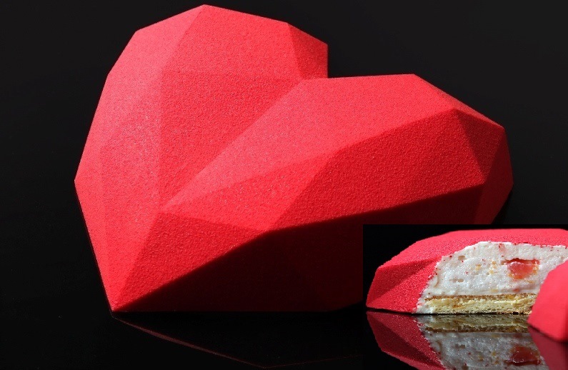 Aşkın evrensel sembolü olan kalbin, mimari pastalarıyla dünyaca ünlü Dinara Kasko’nun elinde yeniden biçimlendiği Heart Cake, ateş kırmızısı renginin yanı sıra acıyla tatlının birbirine karıştığı greyfurt aromasıyla aşkın bu kimyasını mükemmel bir şekilde anlatıyor.