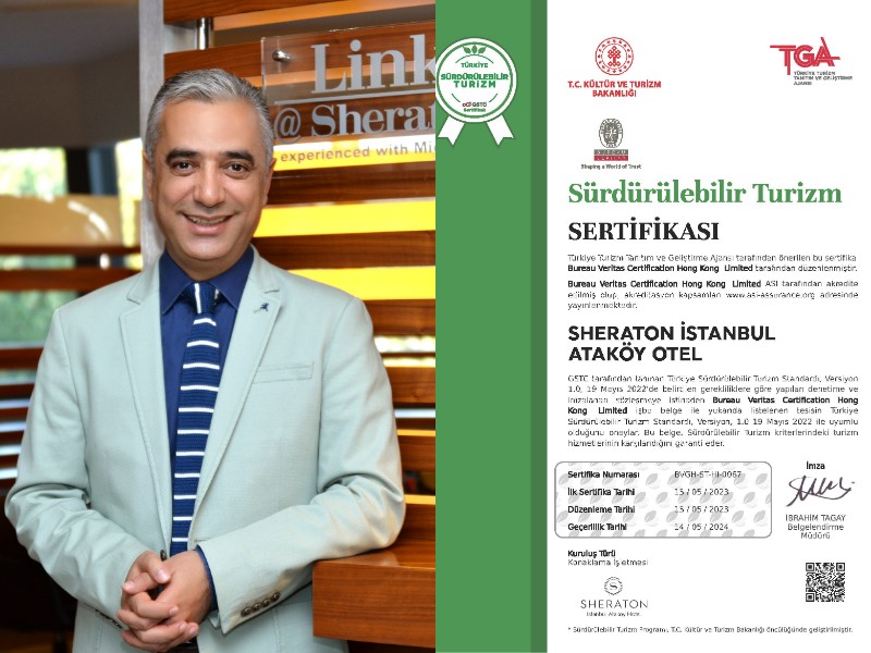Sürdürülebilir bir dünya için çalışmalar gerçekleştirerek sertifikalar kazanan Sheraton İstanbul Ataköy Hotel, çevre ve sürdürülebilirlik platformu Küresel Sürdürülebilir Turizm Konseyi / Global Sustainable Tourism Council tarafından tanınan Sürdürülebilir Turizm Endüstri Kriterleri’nin %100’nü yerine getirerek 3. Aşama “Sürdürülebilir Turizm Sertifikası” almaya hak kazandı.
