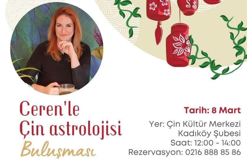 Türk Çin Kültür Derneği Çin Astrolojisi ve Feng Shui uzmanı Ceren Sakin tarafından düzenlenecek söyleşide yeni yıl ve Mart ayı Çin astrolojisine göre yorumlanacak.