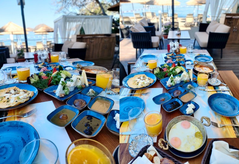 14 çeşit Bodrum ve Ege’ye özel doğal hazırlanmış serpme kahvaltısı yanında, köy zeytinyağı ve köy yumurtasıyla sunulan sıcak omletleri ve özel bitki çayları ile misafirlerine lezzet şöleni yaşatıyor.