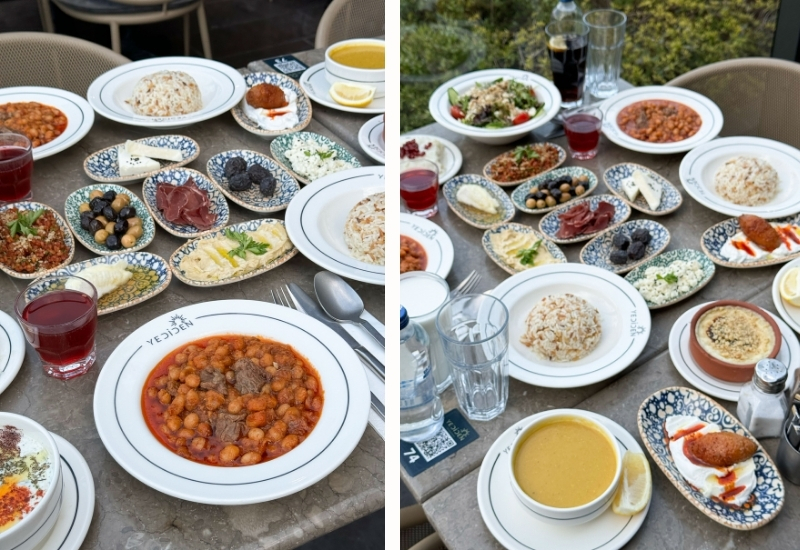 İstinye Park’ta hizmet veren Yediden, üç farklı menü sunuyor. Menülerde çorba, salata ve ana yemek için her misafirin zevkine uygun alternatifler sunuluyor. Buna göre, ilk menü seçeneğinde ana yemek olarak hünkâr beğendinin yanı sıra Afyon Sakala Çarpan Çorbası, ara sıcak olarak süzme yoğurt yatağında Antep usulü içli köfte ve Erzincan tulum peynirli mevsim salatası bulunuyor. İkinci menüde Ege usulü tel şehriyeli tavuk suyu çorbası, vişneli yaprak sarması, gavurdağı salatasının dışında ana yemek olarak tavuklu Abant kebabı yer alıyor. Bir diğer alternatifte ise, ana yemek olarak etli İspir kuru fasulye ve arpa şehriyeli pirinç pilavı, süzme mercimek çorbası, süzme yoğurt yatağında Antep usulü içli köfte ve Erzincan tulum peynirli çoban salatası veya cacık ikram ediliyor.