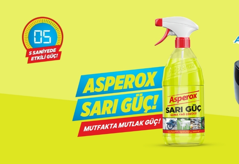 Asperox Sarı Güç’ün mutfak hijyenine odaklanan yeni reklam filmi serisi yayına girdi. Reklam filminde Asperox Sarı Güç’ün en zorlu lekelerdeki 5 saniyede etkili temizliği, “Muftakfa Mutlak Güç” sloganıyla vurgulanıyor.